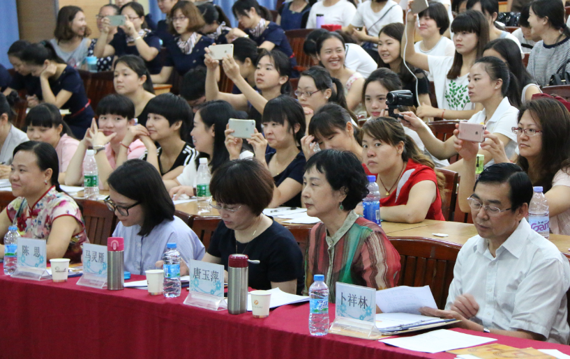 2016年6月14日幼教中心在龍華中英文實(shí)驗(yàn)學(xué)校階梯教室開展“PCK背景下散文圖畫書讀本分析路徑及閱讀活動指導(dǎo)策略研究”,哈佛大學(xué)教育研究院凱瑟琳斯諾教授的博士后陳思老師,寧誼幼教深圳中心主任馬靈雁、教研員潘莉華、羅聘婷,集團(tuán)幼教中心教學(xué)總監(jiān)唐玉萍,幼教中心主任彭雪莉,龍華中英文實(shí)驗(yàn)學(xué)校卜祥林校長,以及23所課題園園長、教師,共171人參加了該研討活動。